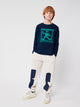 Das Design mit langen Ärmeln, gerippten Bündchen und einem lockeren Schnitt macht es perfekt für aktive Kinder. Die überknielange Passform und der runde Halsausschnitt verleihen dem Kleid einen lässigen Look, der sich für viele Anlässe eignet.