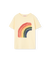 Das Design des T-Shirts zeichnet sich durch einen handgemalten Regenbogen auf der Vorderseite aus, der Freude und Lebendigkeit ausstrahlt. Der subtile Logo-Detail auf der Rückseite verleiht dem Shirt einen besonderen Touch, ideal für aktive Kinder.