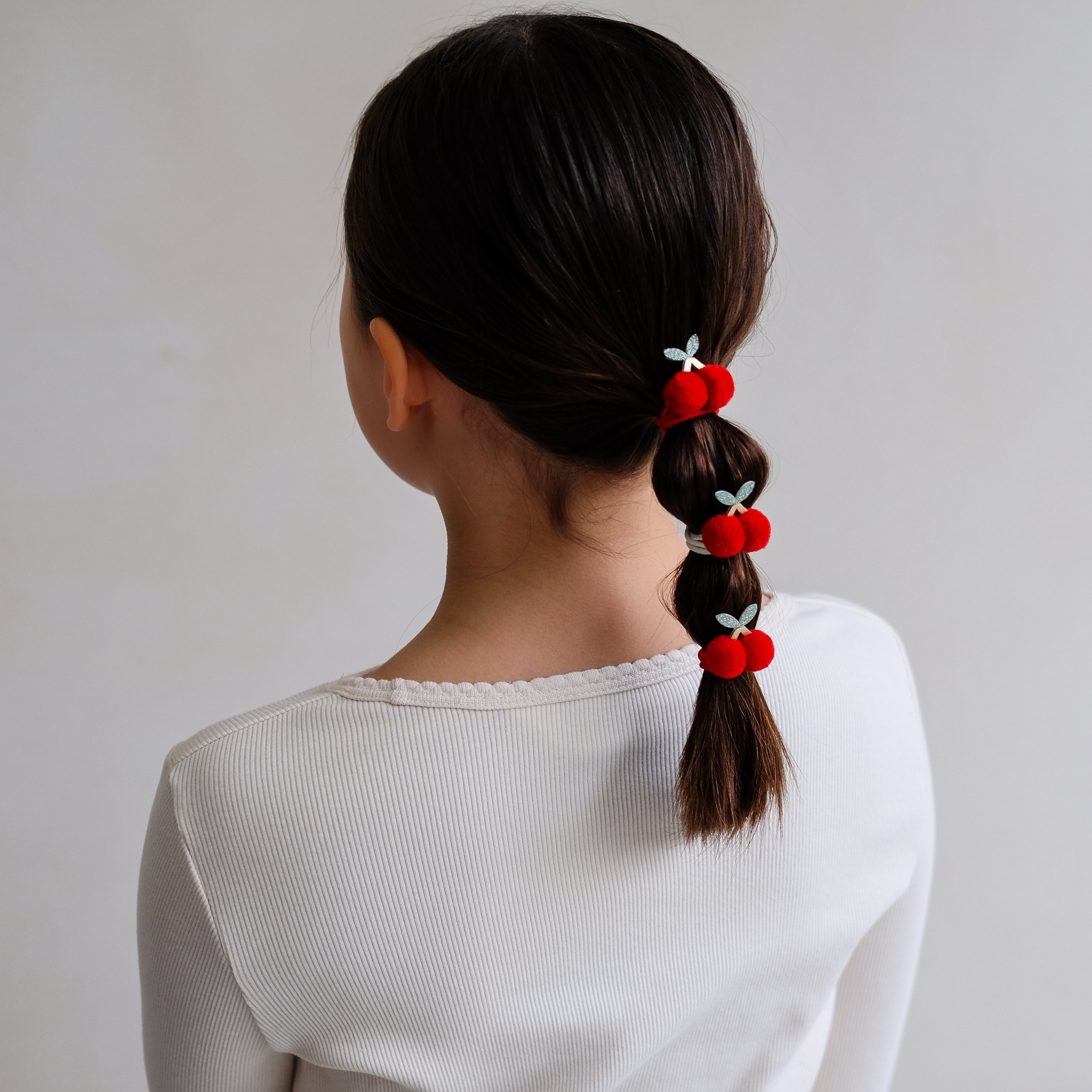 Die einzigartigen Pom Pom Cherries Ponies bieten nicht nur Stil, sondern auch Funktionalität. Sie halten das Haar sicher und verleihen jedem Look eine fröhliche Note. Perfekt für Schule, Spielplatz oder besondere Anlässe!