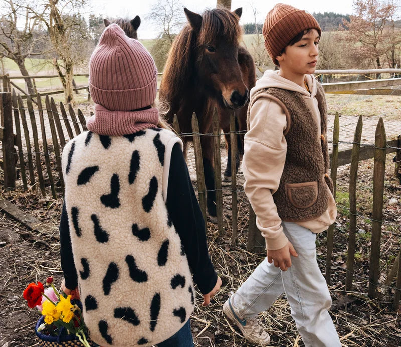 This kids' vest is crafted from 100% organic wool, providing a warm and cozy layer for chilly days. The wool is mulesing-free and Woolmark® certified, ensuring top quality and sustainable production.