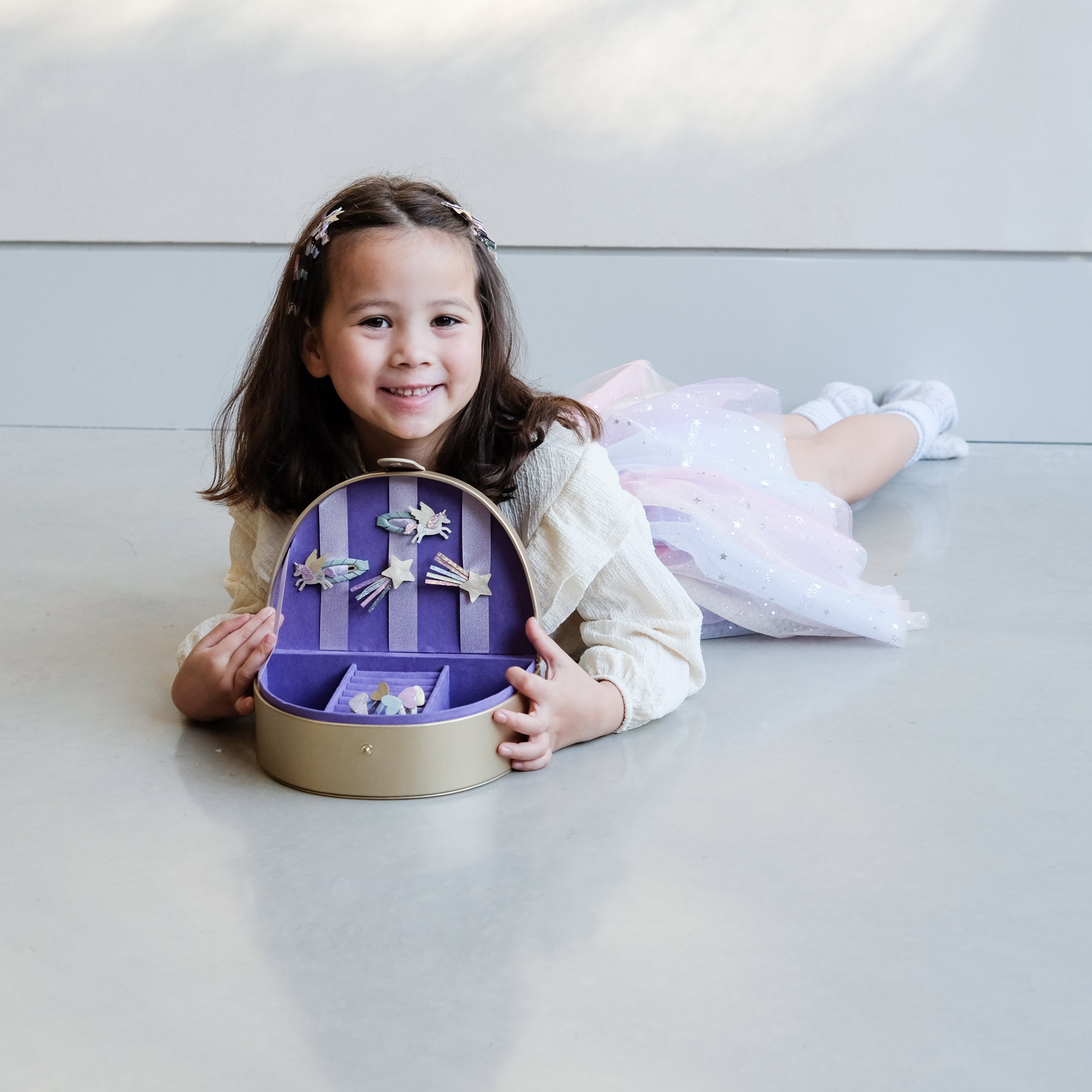 This charming jewelry box by Mimi & Lula is the perfect place to store all your beautiful accessories. Featuring a pastel rainbow design, it makes an ideal gift for little accessory lovers.