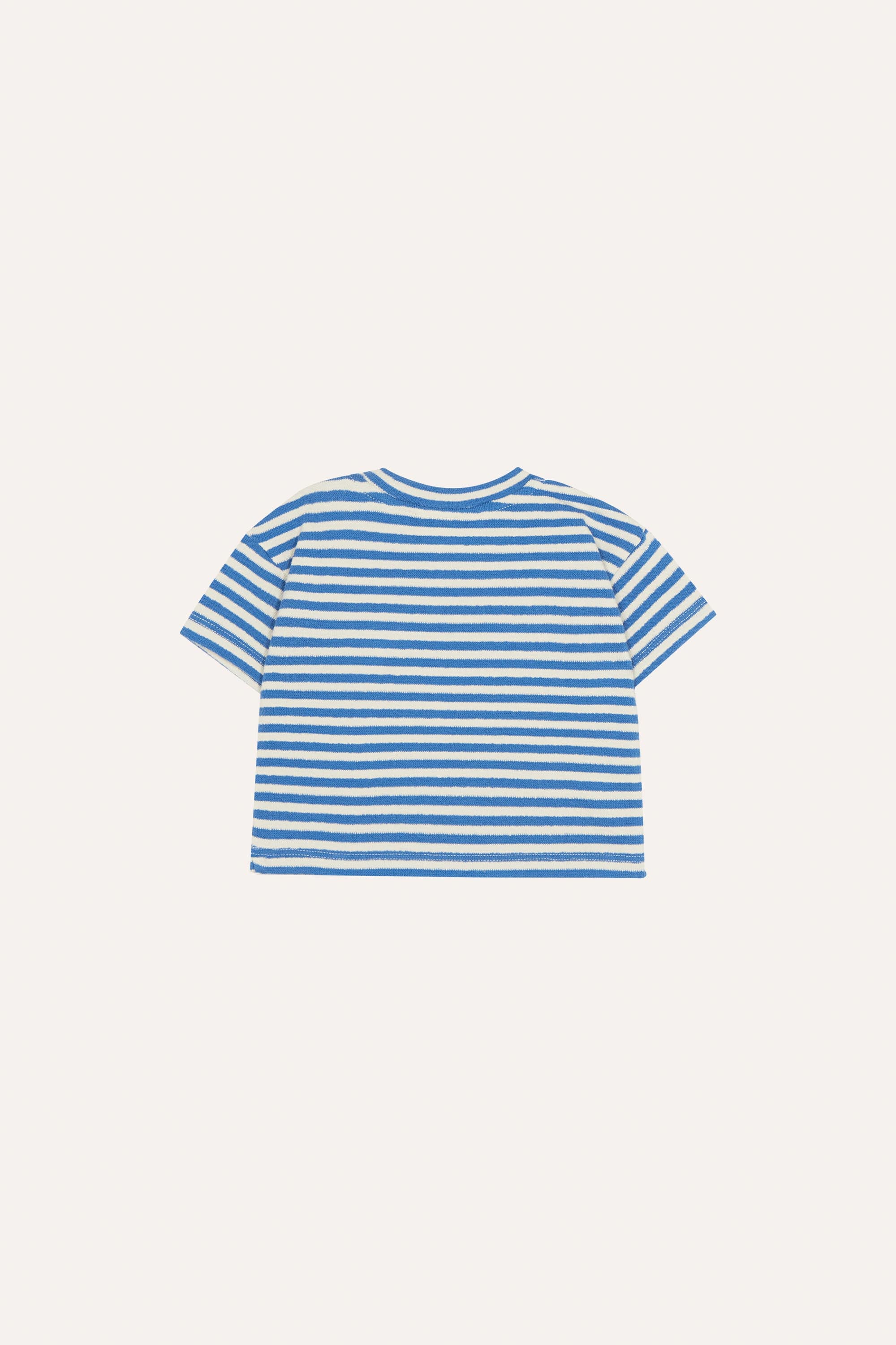 This baby tee is crafted from a special striped cotton fabric known for its softness and breathability. The high-quality cotton ensures a comfortable feel against your baby's sensitive skin, making it ideal for warm summer days.