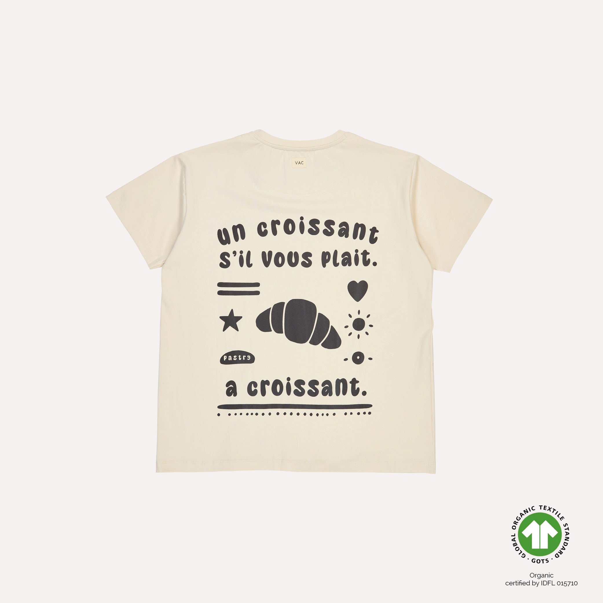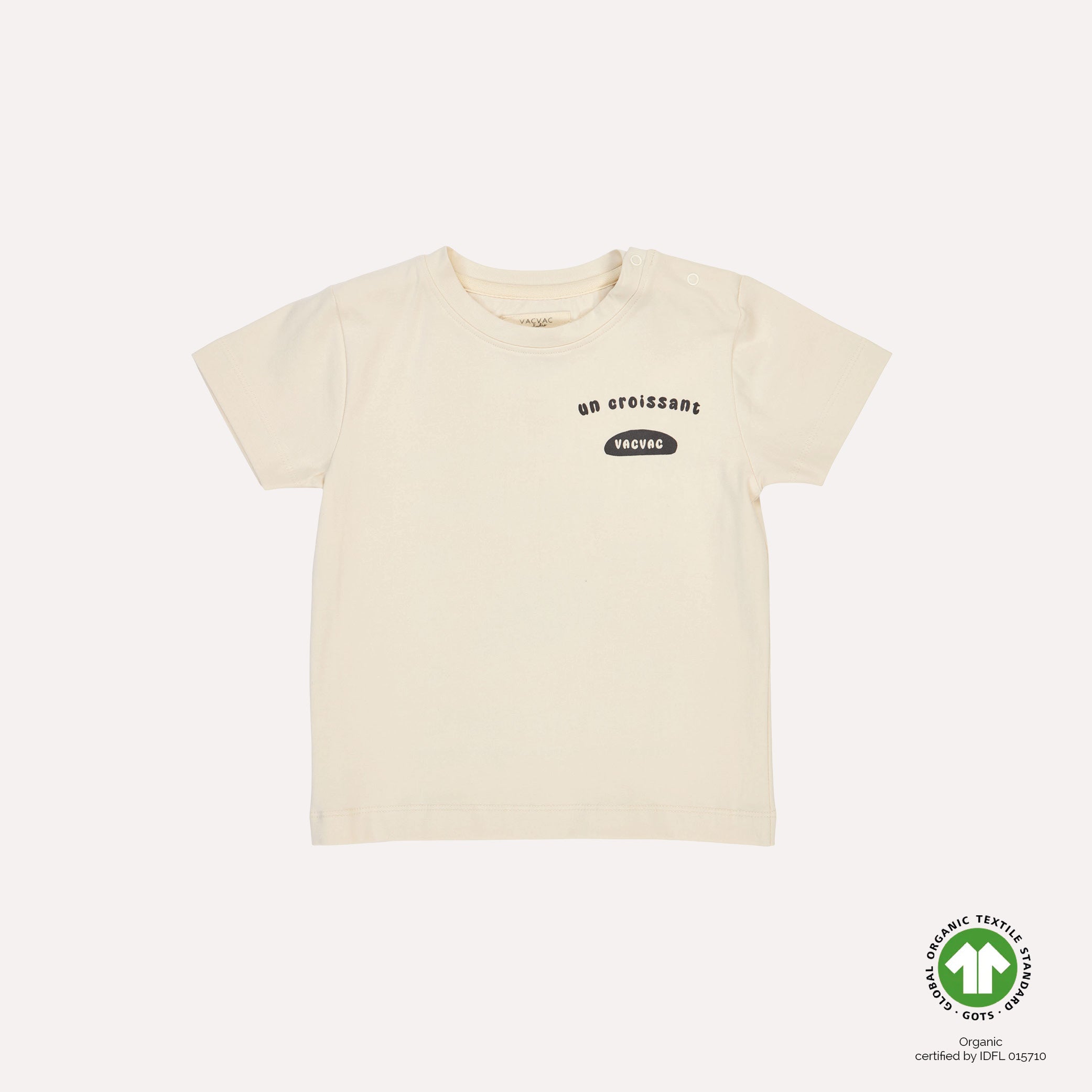 This T-shirt is crafted from 95% organic cotton and 5% elastane, making it soft and stretchy. It is GOTS certified, ensuring it is produced under strict ecological and social standards.