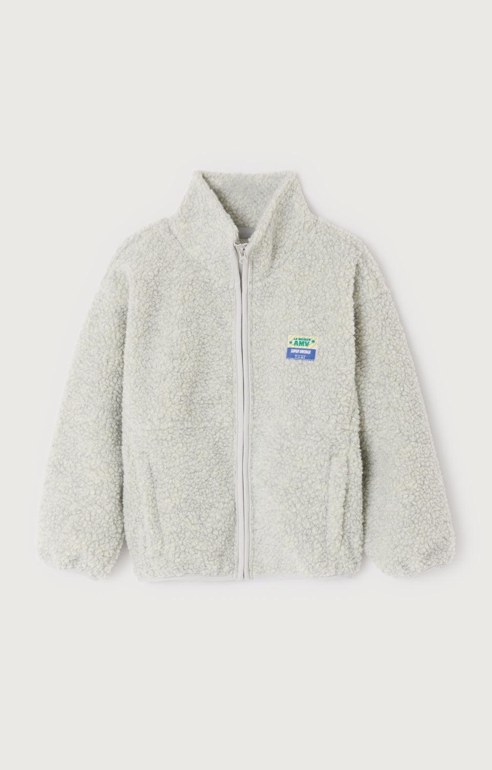 This short, wide kids' jacket from American Vintage is crafted from 100% recycled polyester fibers, offering an eco-friendly choice for style-conscious parents. The use of recycled materials helps reduce waste while providing a soft and comfortable feel.