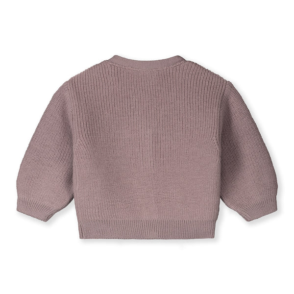 This baby knit cardigan is crafted from 100% merino wool, providing gentle warmth for your baby's sensitive skin. With RWS certification, you can trust that the wool is sourced responsibly and sustainably.